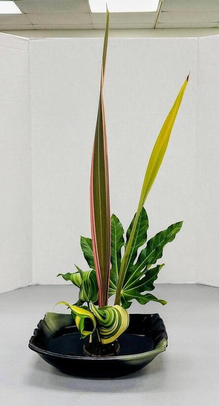 Theme: Arrangement with leaves only, book 4-2, Pages 63-65. Materials will be provided. Vase: Any vase. Bring kenzan if you have to use.