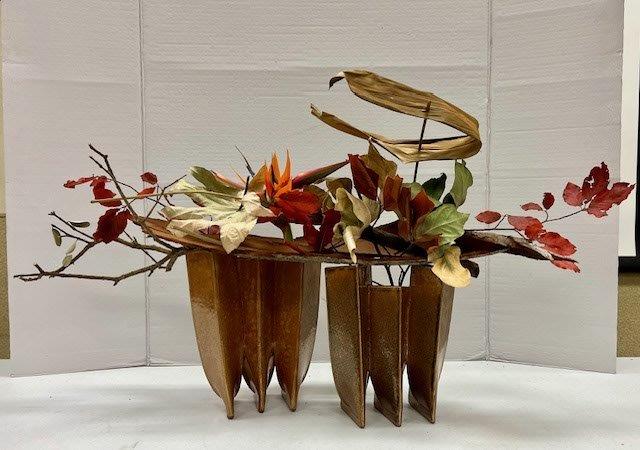 PM: Arrangement using any type of dried leaves. (Check text book 4-13, page 88-91 for only dried leaves) Bring dried leaves, branches, and fresh flowers. Bring any kind container, kenzan if you need.